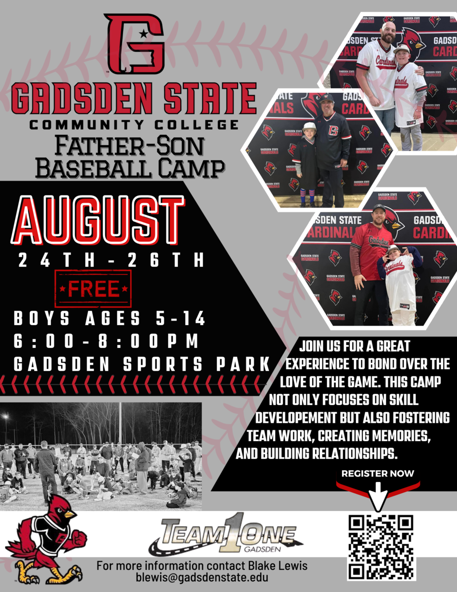 GADSDEN, AL – The Gadsden State Community College Baseball Program is excited to announce its 3rd Annual Father-Son Baseball Camp, scheduled for August 24-26, 2025.