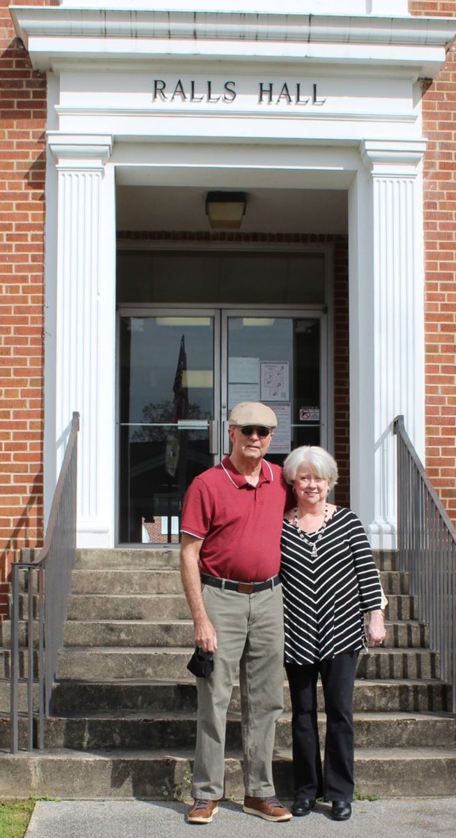 Above: Jimmy and Deborah Coker stand in front of the building where they saw one another for the first time in 1970. She was sweeping the sidewalk and he was driving by her. They were eventually introduced by a fellow student in the cafeteria.