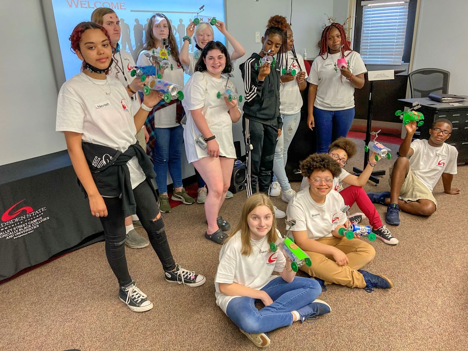Students from last year’s Empowerment Camp are pictured with tin can robot cars built during the morning of the one-day session. This year’s camp will return to the three-day camp format.