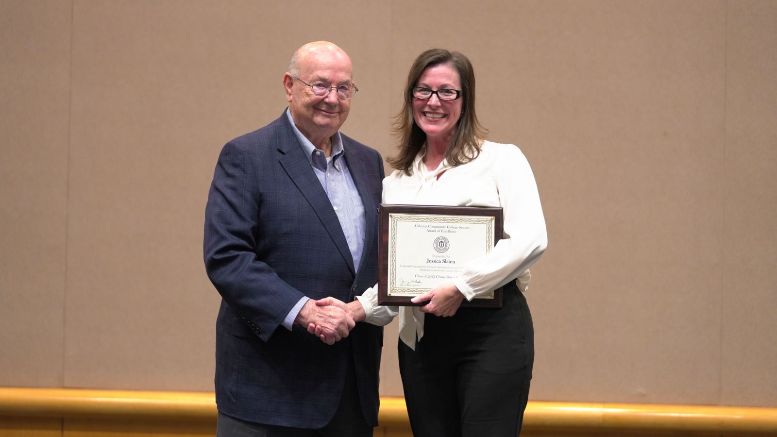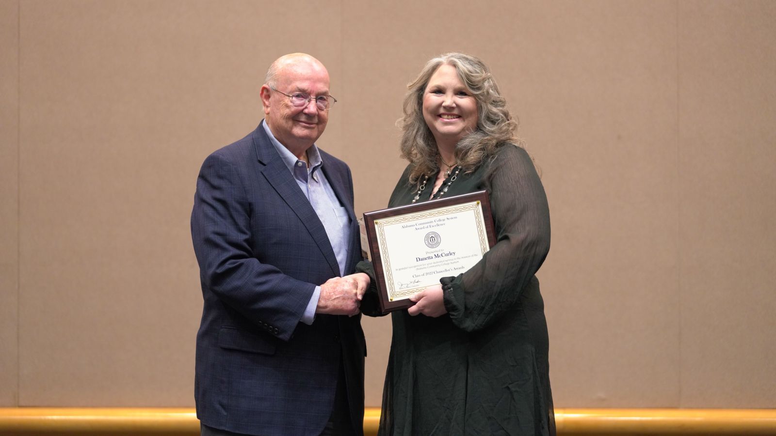 Winners were recognized locally in September at the Spring Convocation held at Gadsden State Cherokee. Two members of faculty were selected for the award – Dr. Danetta McCurley and Elise Harbin. The support staff award went to Kathy Brown, and the administrator award winner is Jessica Slaten.