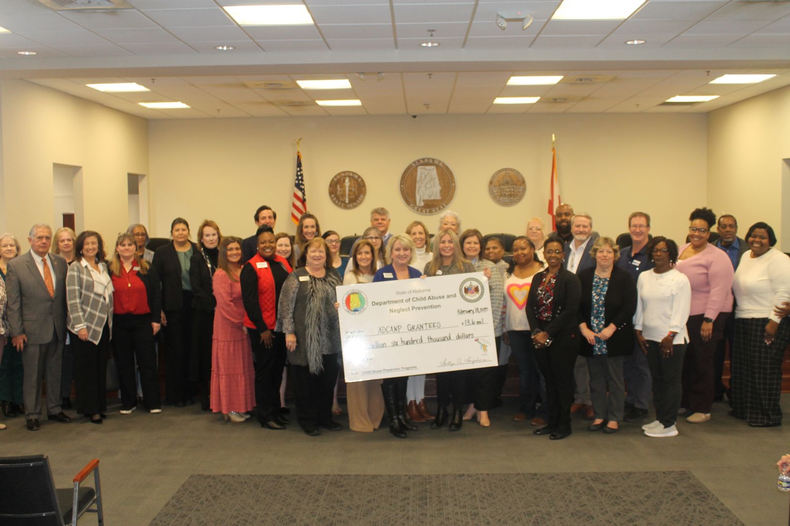 Gadsden, Ala. – The Alabama Department of Child Abuse and Neglect Prevention joined local and state leaders to present a check in the amount of $13.6 million to grantees, including the Skills Training Division at Gadsden State Community College. The check presentation was Feb. 18 in the Alabama State House in Montgomery.