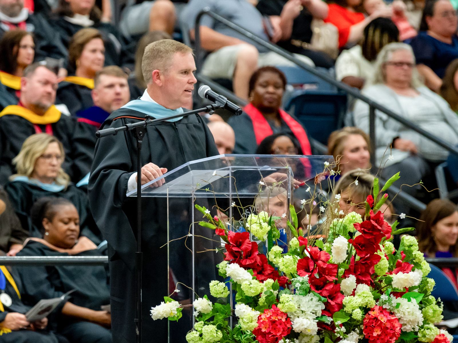 Alan Smith addresses students at the Spring 2025 Commencement Ceremony.