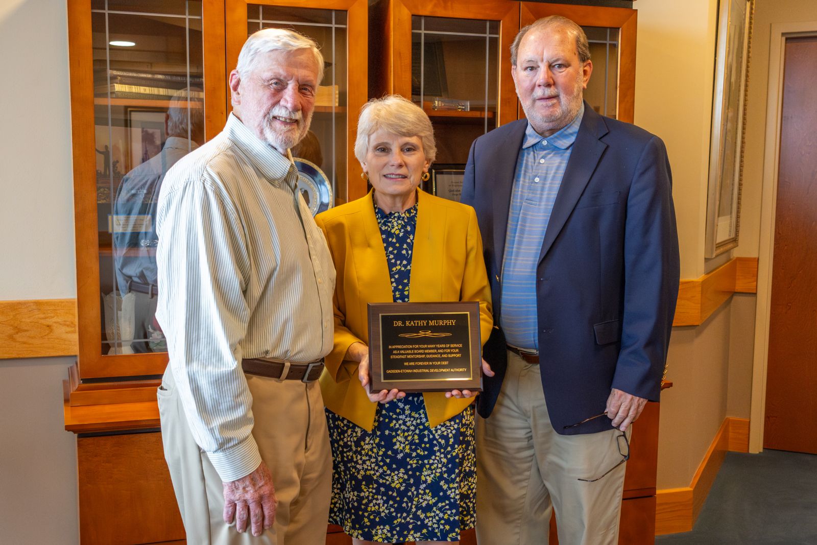Dr. Murphy (middle) was presented a plaque from the Gadsden-Etowah Industrial Development Authority by Executive Director David Hook (right) and Assistant Director William R. Greene II (left).