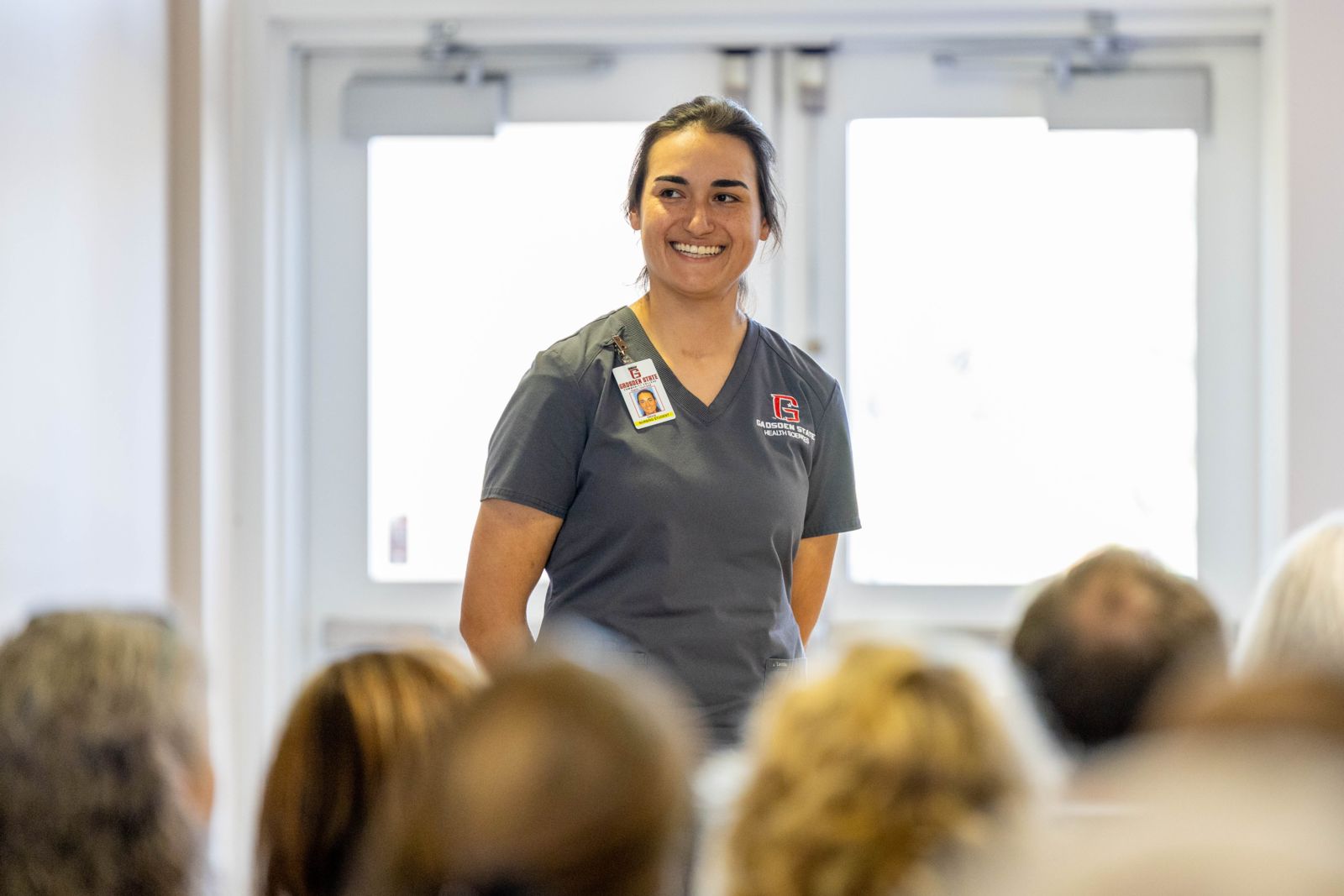 Following Kinard’s message, nursing student, Olivia Monterrojas, shared her story about how Gadsden State has been an incredible part of her life. “From my first day at Gadsden State, it has supported my personal goals and helped me be the person that I always wanted to be,” said Monterrojas. Monterrojas emphasized that her experiences at Gadsden State have prepared her for success in both her studies and her future career in nursing.